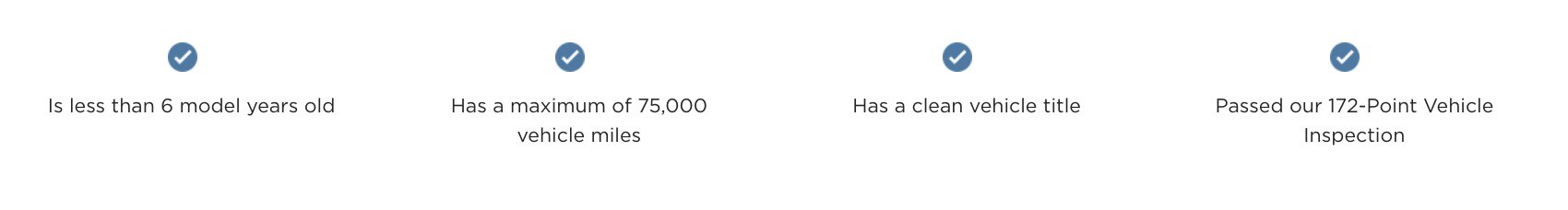 Every single vehicle you'll see here on our website is Certified and has gone through these strict evaluation standards: