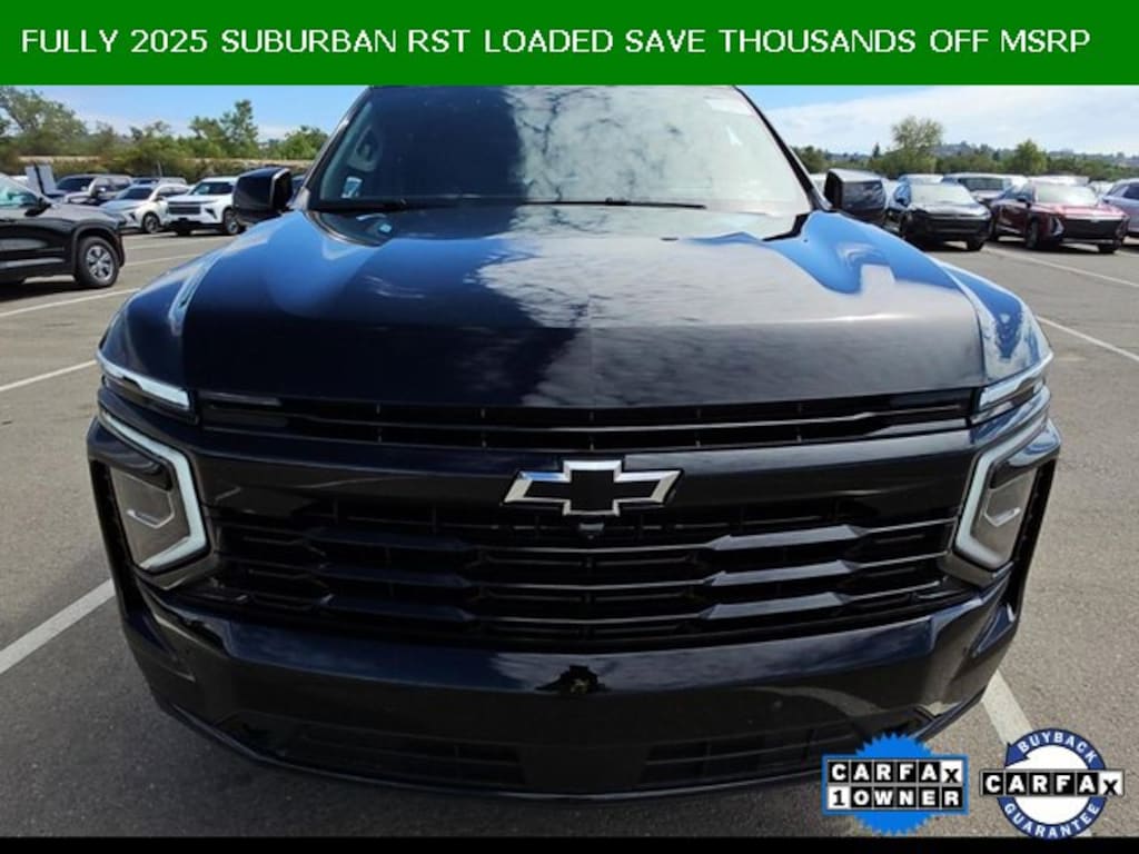 Subject to the primary lender's approval. All prices exclude tax, title, dealer fee of $695, tags, license & DMV. Vehicles are sold cosmetically as is. Not all cars are certified where as many do pass the certification process, the customer does have the right to add an optional extended service agreement. Odometer is 9821 miles below market average! 7 PASSENGER, CLEAN VEHICLE HISTORY...NO ACCIDENTS, Leather Seats, Moonroof, Navigation System, ONE OWNER, PASSES STATE INSPECTION, REMAINDER OF FACTORY WARRANTY, SERVICE RECORDS AVAILABLE, Backup Camera, Bluetooth, Bose High End Sound Package, Captains Chair, Remote Start, 15 Diagonal Multi-Color Head-Up Display, 2 USB Charge/Data Ports in Center Console Delete, 2-Speed Active Electronic AutoTrac Transfer Case, 2nd Row Pwr Release 60/40 Split-Folding Bench Seat, 3 Years of OnStar Digital Services/Safety Services, 3rd Row 60/40 Power-Folding Split-Bench, 8-Way Power Front Passenger Seat Adjuster, Advanced Technology Package, Advanced Trailering Package, Air Ride Adaptive Suspension, Auto-Dimming Inside Rear-View Mirror, Blind Zone Steering Assist w/Trailering, Bose 10-Speaker Surround w/CenterPoint, Bright Front & Rear Door Sill Plates, Comfort Package, Dual Exhaust System, Front LED Fog Lamps, Heated 2nd Row Outboard Seats, Heated Driver & Front Passenger Seats, Heated Power-Adjustable Outside Mirrors, Heated Steering Wheel, Hill Descent Control, Hitch View w/Pan/Zoom Image Adjustment, Inside Rearview Auto-Dimming Rear Camera Mirror, Integrated Trailer Brake Controller, LED Headlamps w/LED Daytime Running Lamps, LED Tail Lamps, Magnetic Ride Control Suspension, Max Trailering Package, Memory Settings, Memory Settings For Driver, Navigation system: Google built-in compatibility (select service plan required, terms and limitations apply), Power-Sliding Center Floor Console, Preferred Equipment Group 1SP, Rear Power Liftgate, RST Capability Package, RST Exterior Features, Smart Trailer Integration Indicator, Super Cruise, Technology Package, Universal Home Remote, Wireless Phone Charging. 4WD 10-Speed Automatic with Overdrive EcoTec3 6.2L V8Recent Arrival!Chevrolet Certified Pre-Owned Details:* Vehicle History* 172 Point Inspection* Limited Warranty: 12 Month/12,000 Mile (whichever comes first) from certified purchase date* Transferable Warranty* Warranty Deductible: $0* 24 months/24,000 miles (whichever comes first) Certified Pre-Owned Scheduled Maintenance Plan and 3 days/150 miles (whichever comes first) Vehicle Exchange Program. SiriusXM 3-month trial subscription.* Powertrain Limited Warranty: 72 Month/100,000 Mile (whichever comes first) from original in-service date* Roadside AssistanceCertified. Black 2025 Chevrolet Suburban RST
